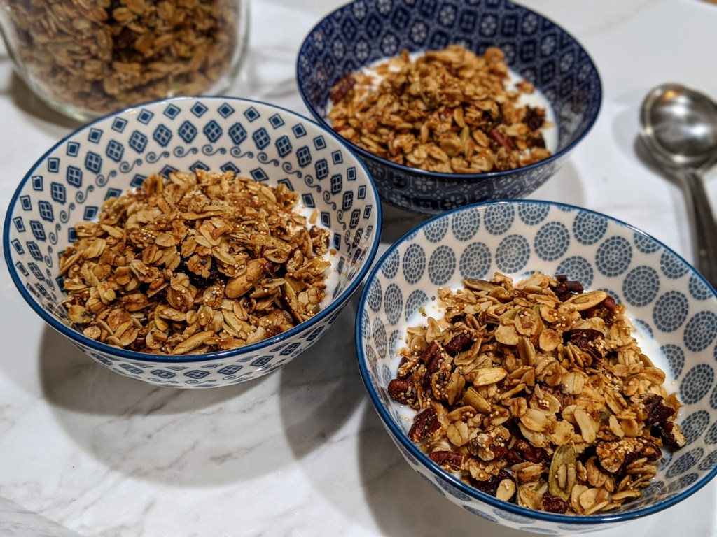 Hope you enjoy this protein packed, lightly sweetened granola for a healthy breakfast or as a snack…